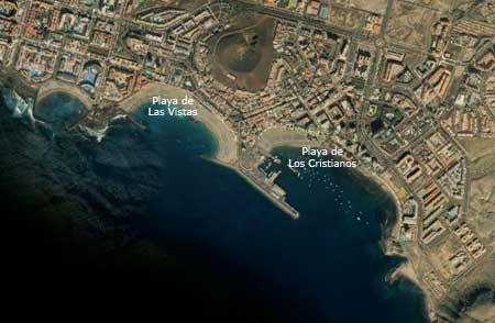 Es una playa artificial protegida por un rompeolas que se encuentra en una bahía junto al puerto pesquero y deportivo del pueblo marinero de Los Cristianos, situado en la costa del municipio de Arona.
